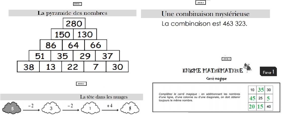 EXERCICES DE CALCUL MENTAL : SEMAINE 39