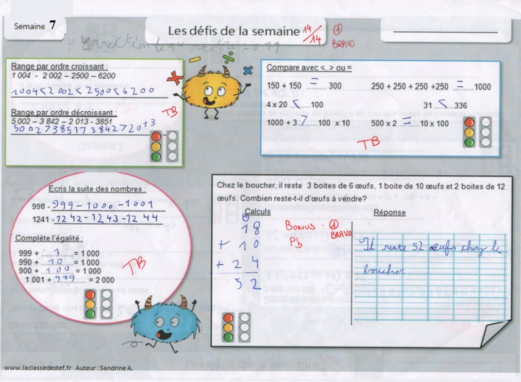 EXERCICES DE CALCUL MENTAL : REPONSES SEMAINE 7