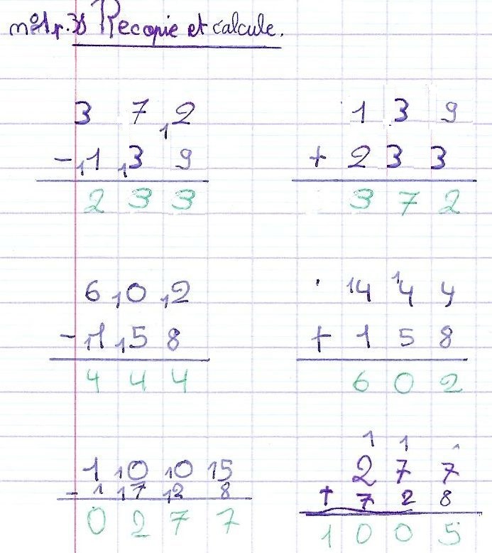 SOLUTIONS SOUSTRACTIONS D'ENTIERS