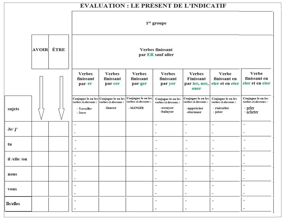 CONJUGAISON : ÉVALUATION N°4 (Présent de l'indicatif (verbes du 1