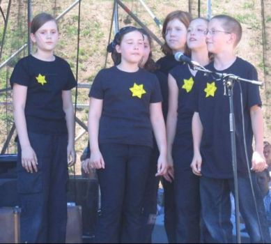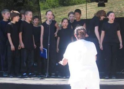 Elisabelle Marx dirigeant nos jeunes artistes.