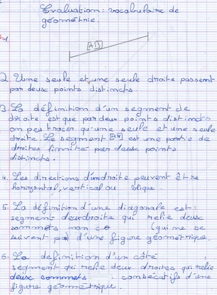 SOLUTION DE L'ÉVALUATION N°1 : LE VOCABULAIRE DE GÉOMETRIE