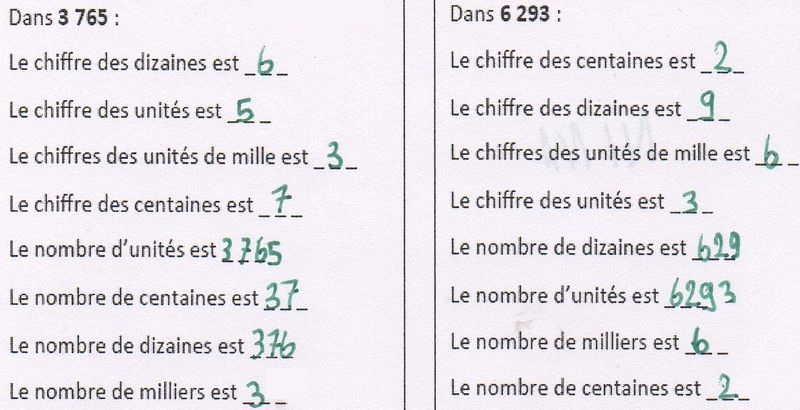 NUMERATION (FICHE N°1 : SOLUTIONS DES EXERCICES).