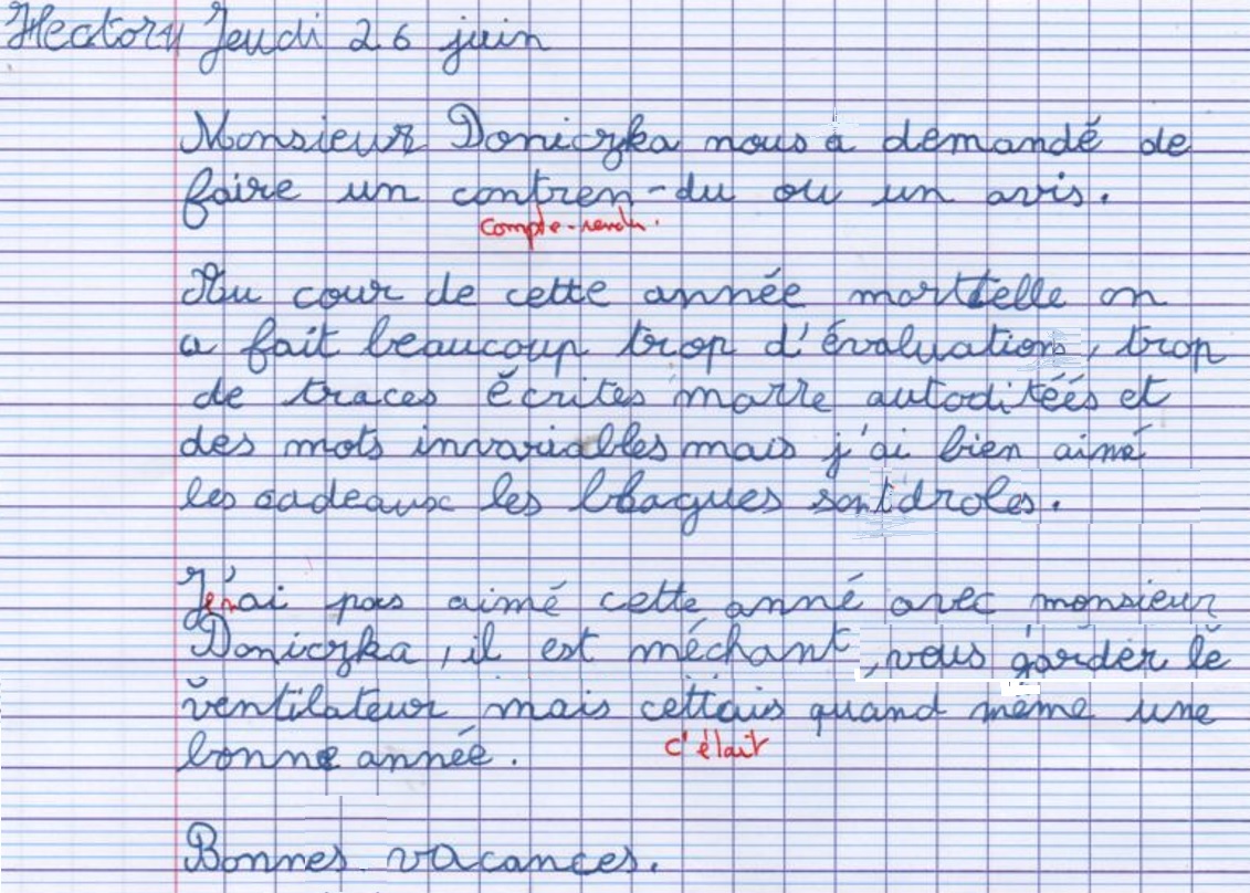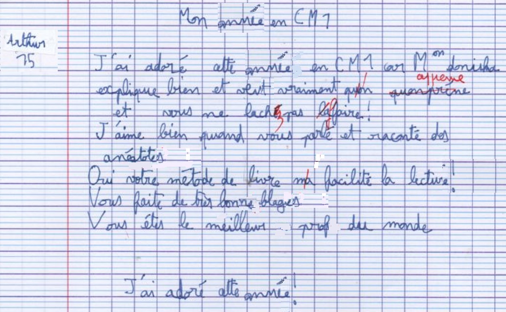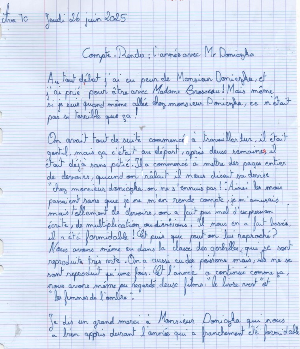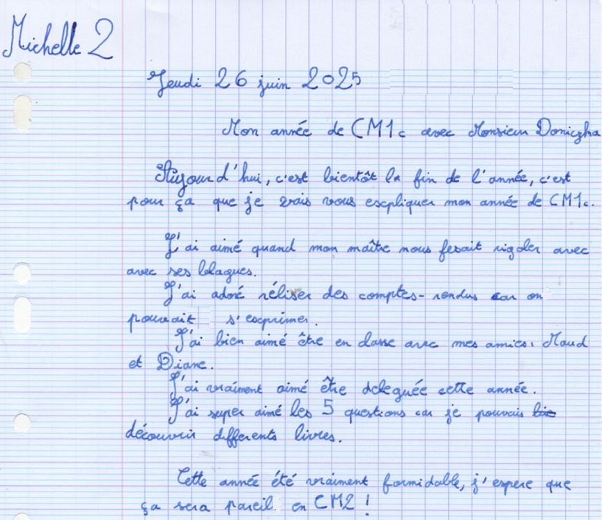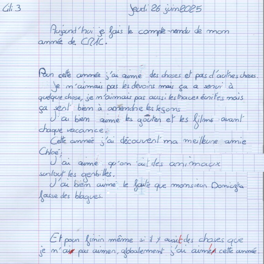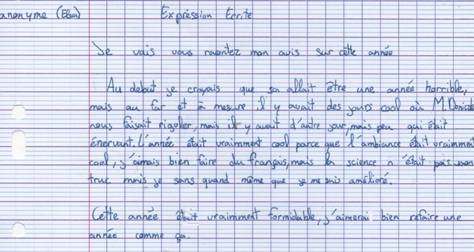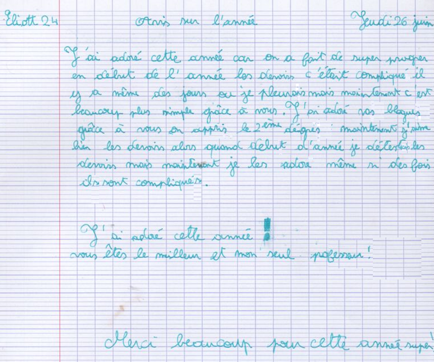 Avis des CM1c à propos de l'année scolaire 2024-2025 avec possibilité de rédaction sous anonymat
