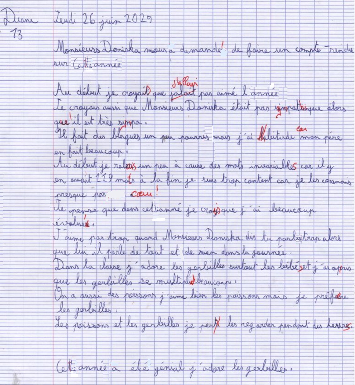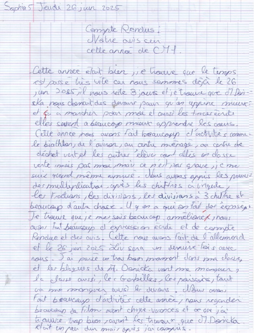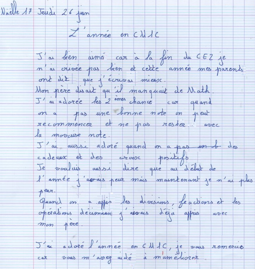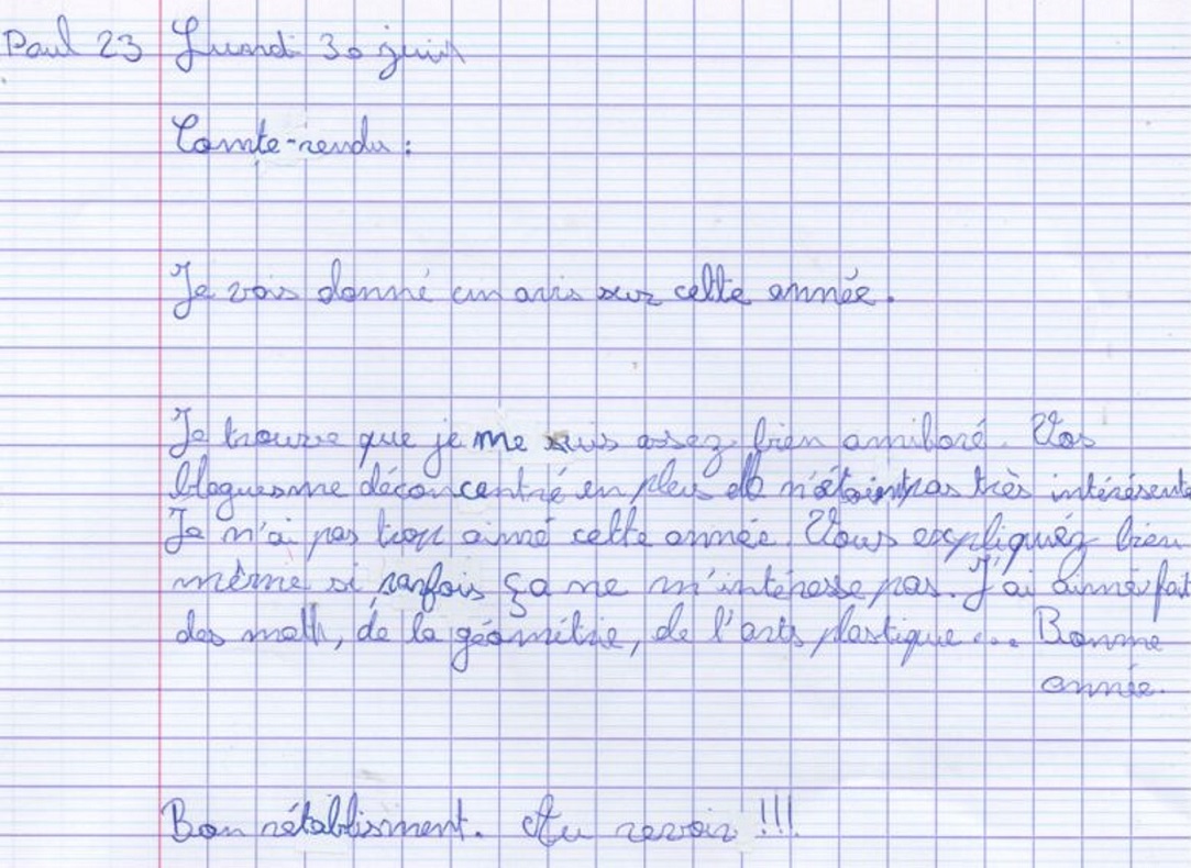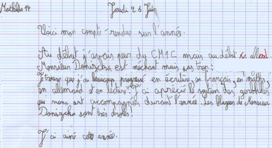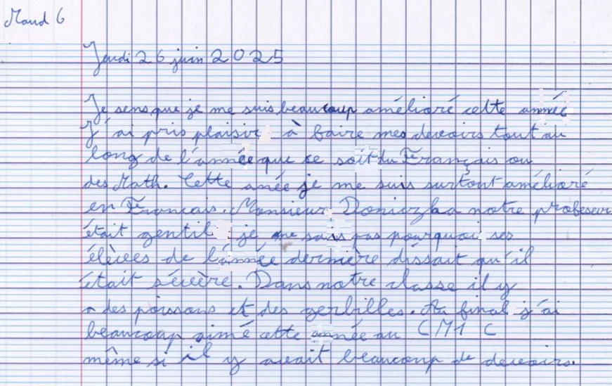 Avis des CM1c à propos de l'année scolaire 2024-2025 avec possibilité de rédaction sous anonymat