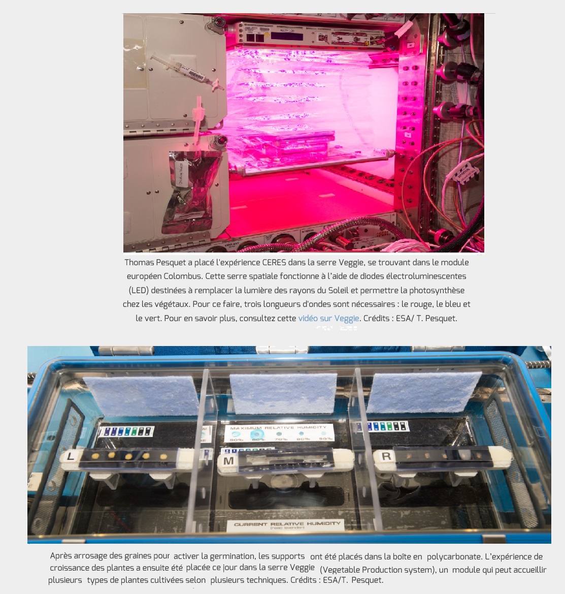 Thomas Pesquet : Ceres : germination des plantes.