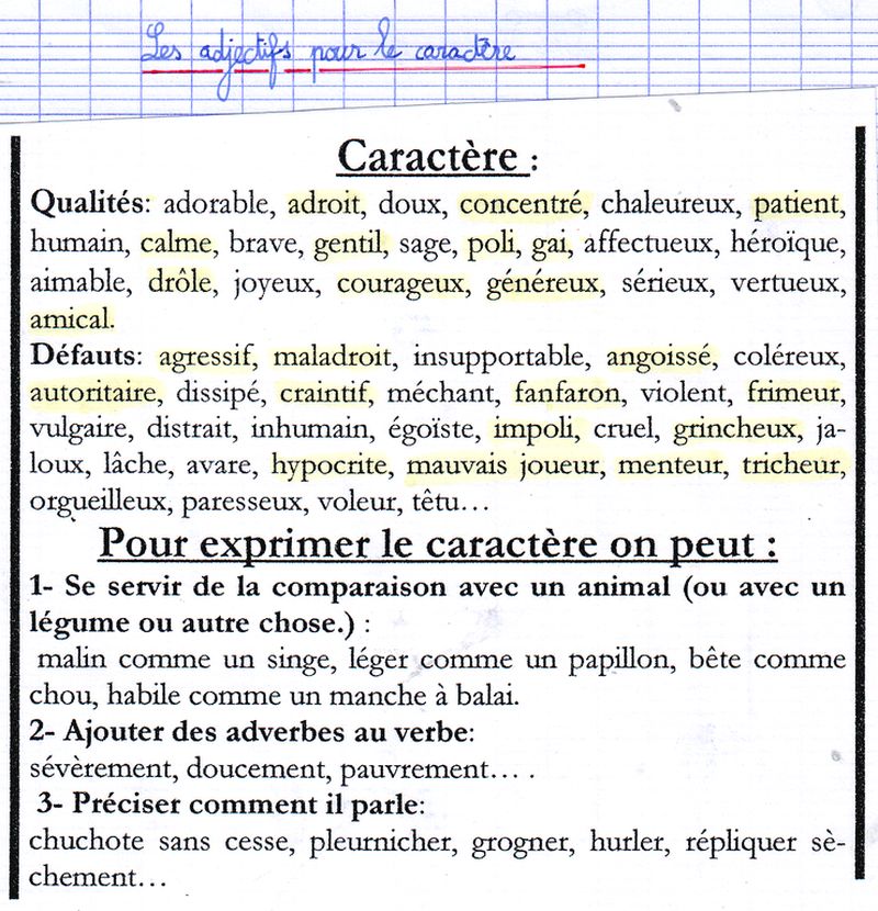 V04 : LES ADJECTIFS POUR LE CARACTERE.