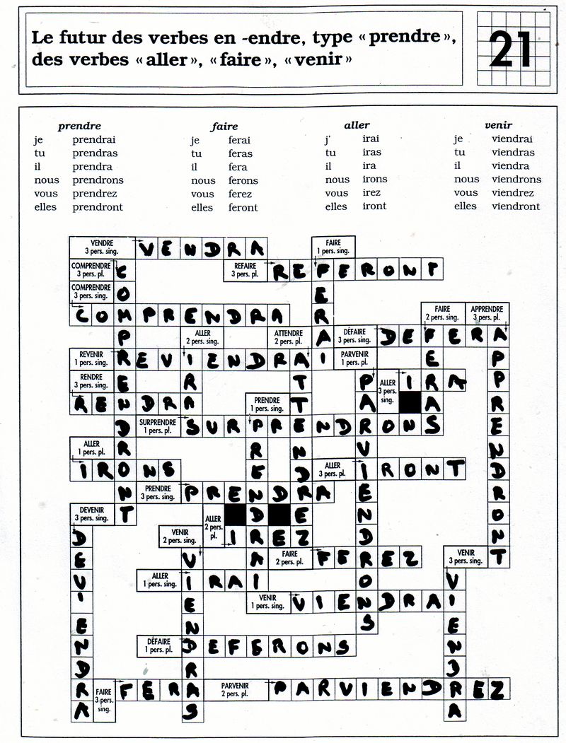 FICHE N°21 : LE FUTUR DES VERBES EN -ENDRE